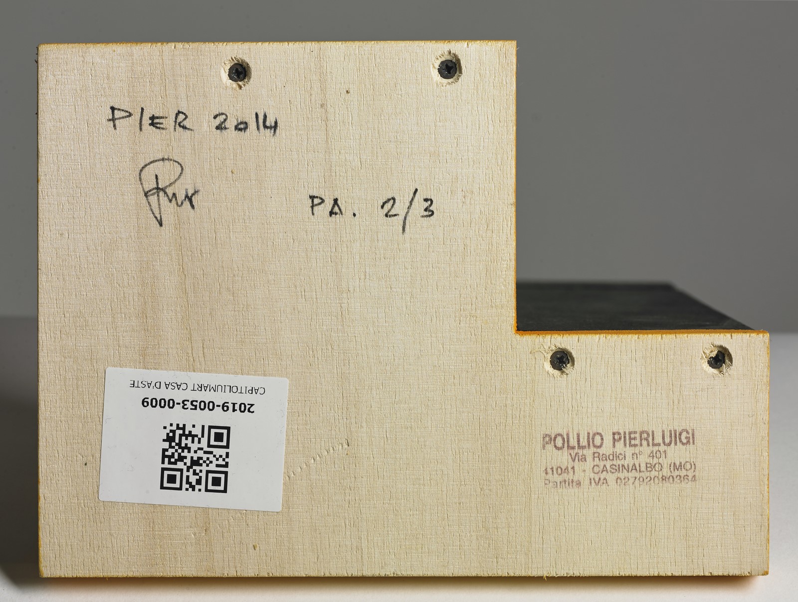 POLLIO PIERLUIGI (n. 1956) Senza titolo. 2014. Legno. Cm 22,00 x 41,00 x 17,00. Pa 2/3. Tiratura, firma e anno sotto la base.