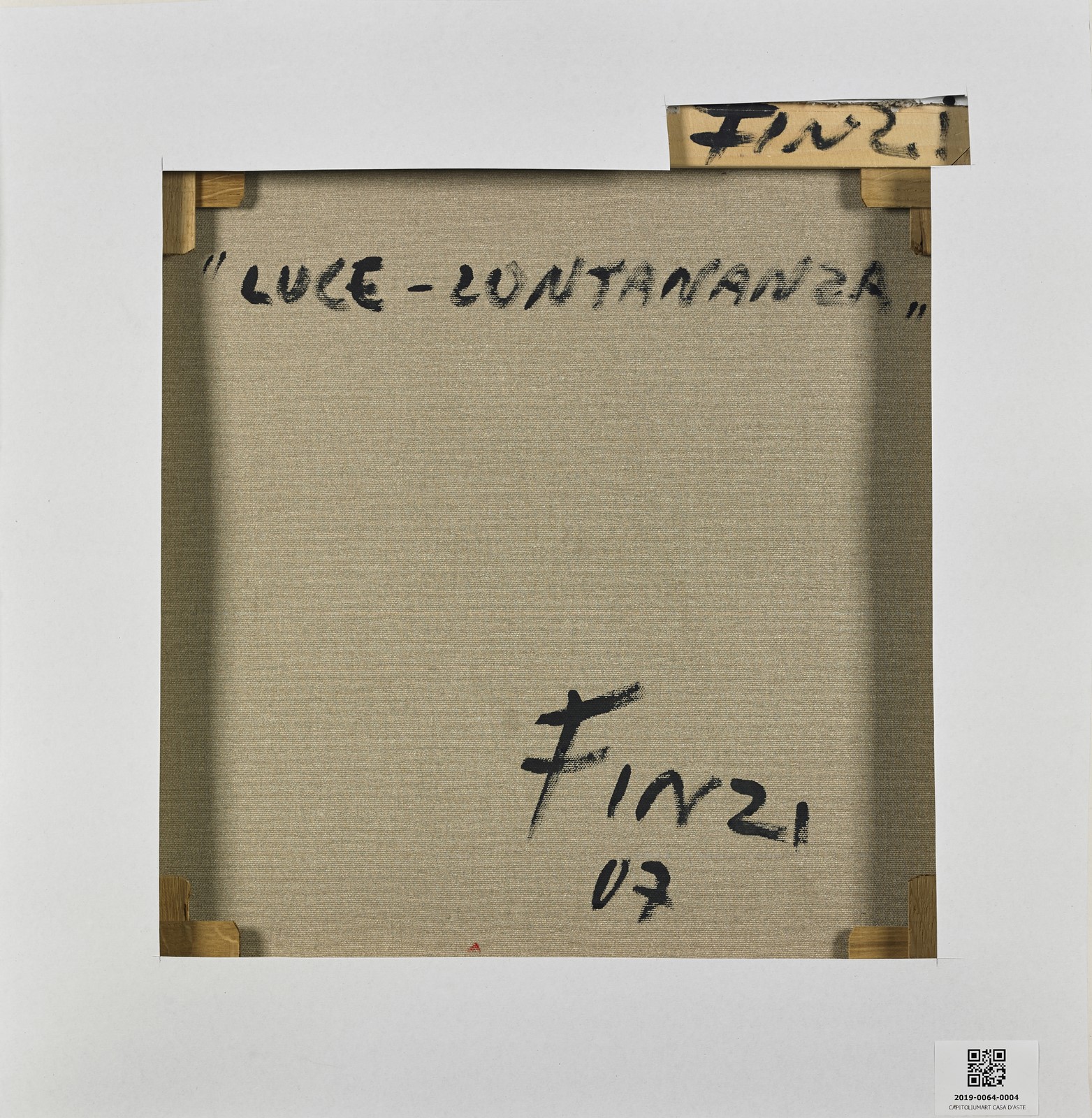 FINZI ENNIO (n. 1931) Luce-lontananza. 2007. Acrilico su tela. Cm 50,00 x 50,00. Al retro titolo, frima e anno.Autentica dell'artista su fotografia. Cornice presente