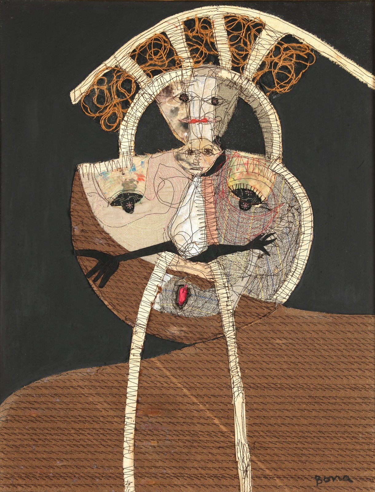 TIBERTELLI DE PISIS BONA (1926 - 2000) La face de l'histoire. Mixed media on canvas. Cm 50,00 x 65,00. Signature lower right. At the back title and Cortina Gallery, Milan label. Cornice presente