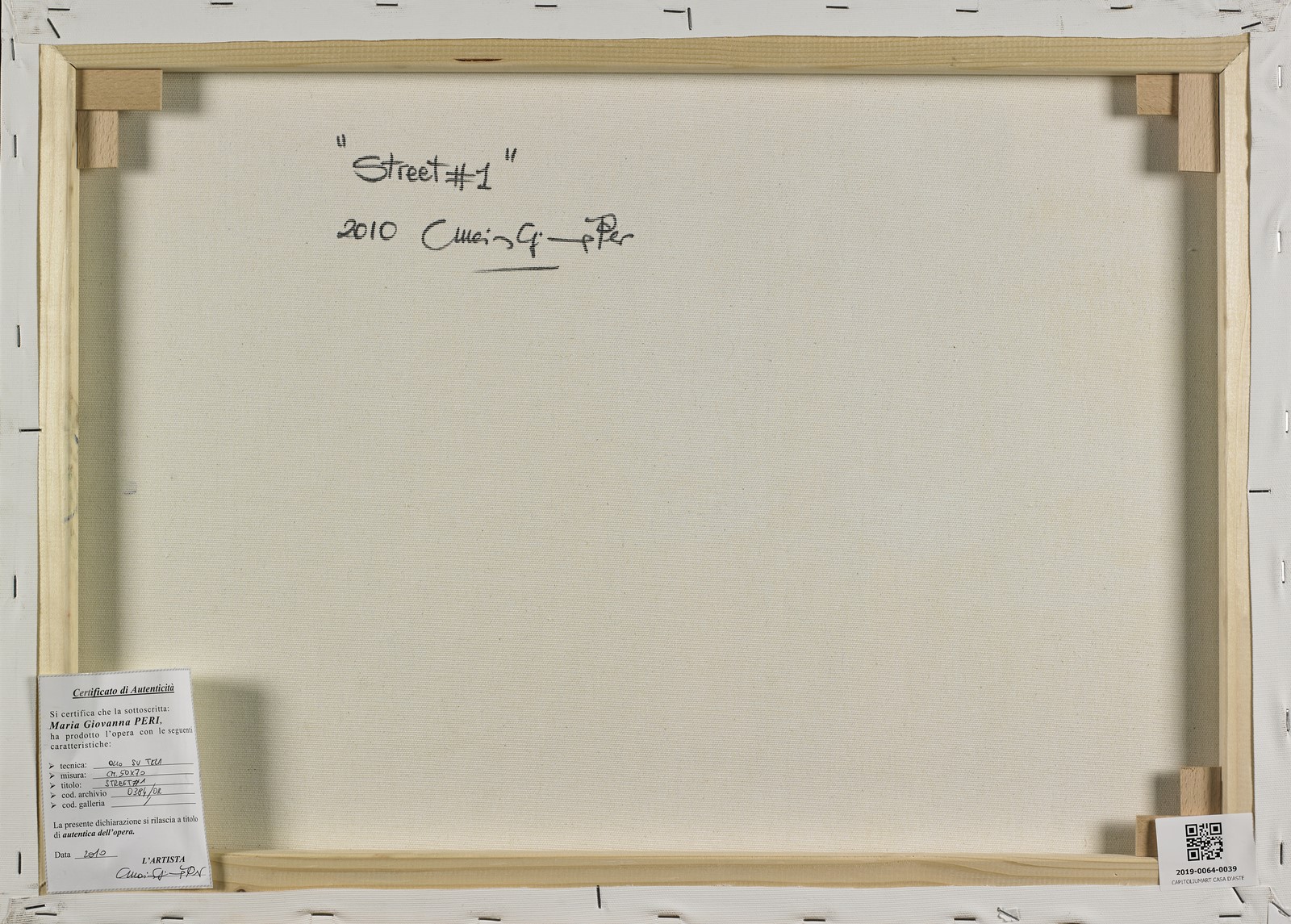 PERI MARIA GIOVANNA (n. 1978) Street #1. 2010. Olio su tela . Cm 70,00 x 50,00. Firma in basso a destra. Al retro titolo, firma, anno e certificato di autenticità dell'artista. Autentica dell'artista su fotografia.