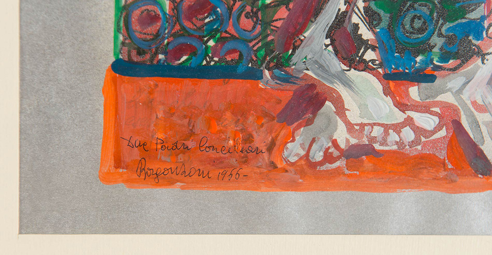 Aldo Borgonzoni (Medicina 1913 - Bologna 2004), “Due padri Cardinali”, 1966. Acquerello e tecnica mista su carta, firmata, titolata e datata in basso a sinistra ‘Due Padri Cardinali’ - Borgonzoni 1966, H cm 33.5x24