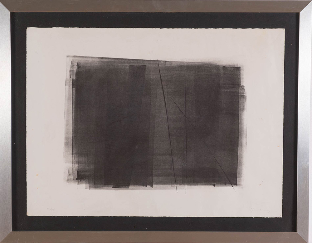 Hans Hartung (Lipsia 1904 - Antibes 1989), “Composizione Astratta”, 1966. Litografia su carta, firmata in basso a destra Hans Hartung, numero di tiratura in basso a sinistra, 47/75, reca in basso a sinistra timbro a secco Erker Presse St. Gallen, Foglio H cm 56x76