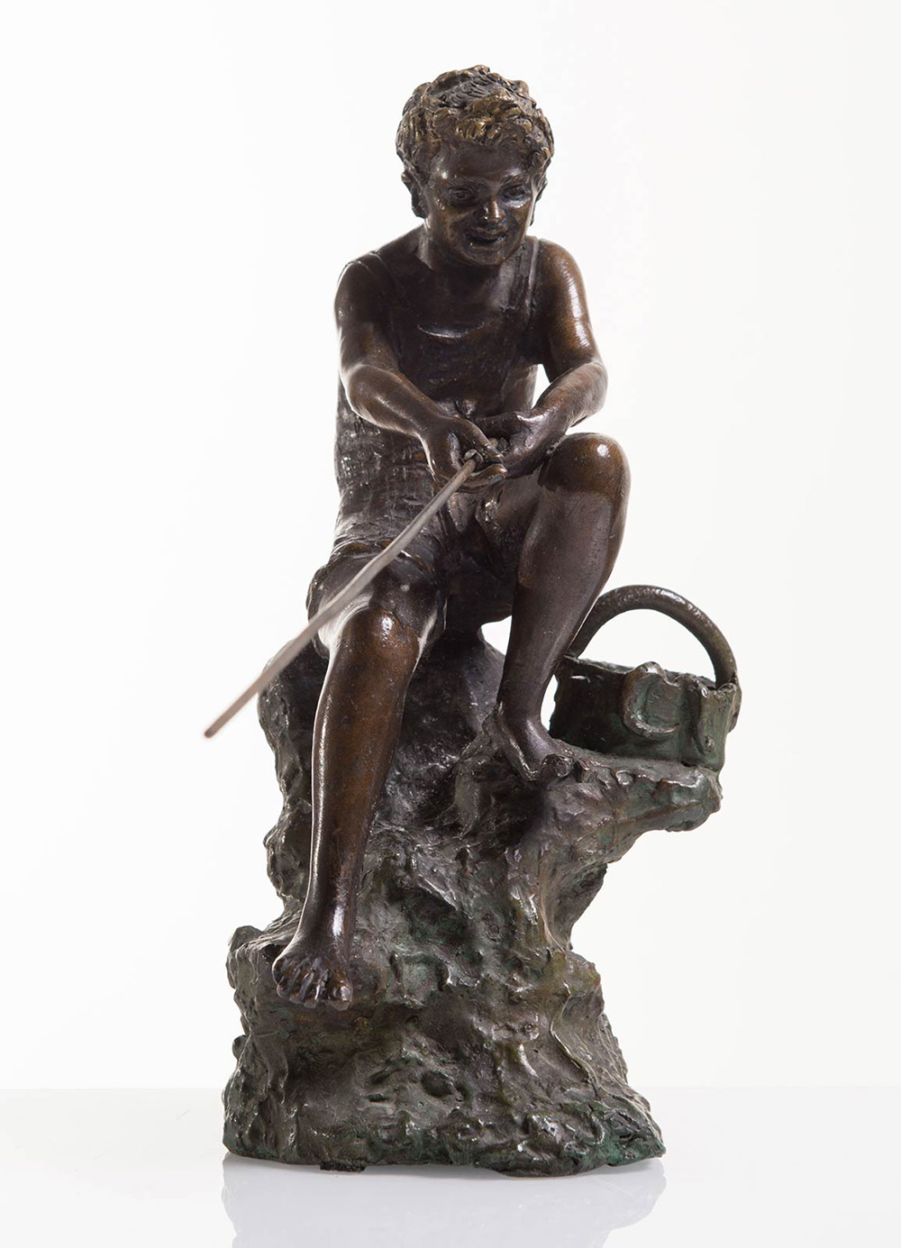 Giovanni De Martino (Napoli 1870 - 1935), “Pescatore”. Scultura in bronzo, firmata De Martino, H cm 27.5x16x10