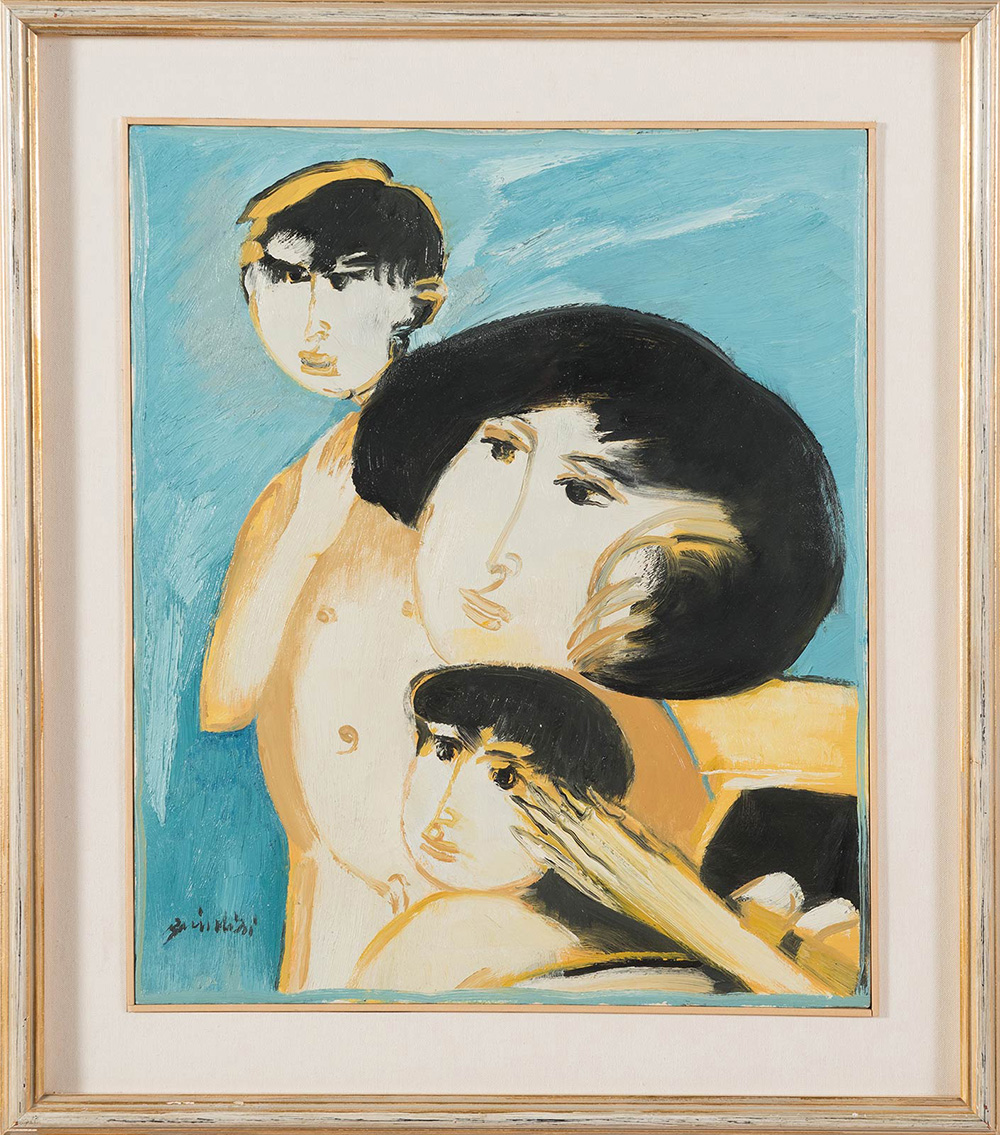 Remo Brindisi (Roma 1918 - Lido di Spina 1996), “Maternità”. Olio su tela, firmato in basso a sinistra Brindisi, al retro reca firma per autentica ‘Olio autentico - Brindisi’, H cm 60x50