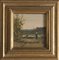Guglielmo Pizzirani (Bologna 1886 - 1971), “Paesaggio Lacustre”. Olio su cartone, siglato in basso a destra GP, al retro reca firma Guglielmo Pizzirani, H cm 21x21