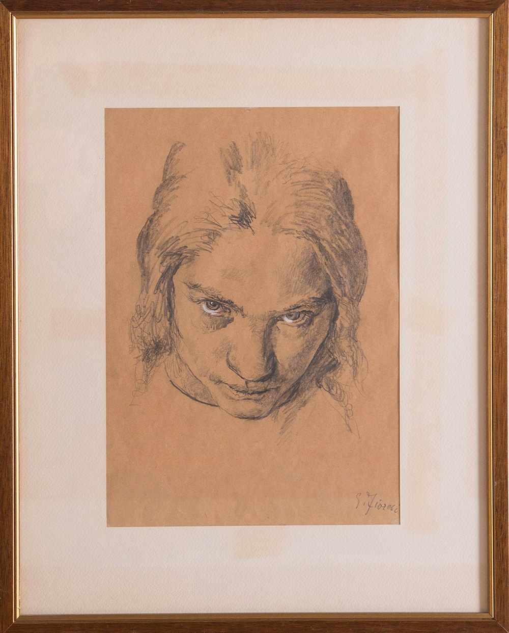 Garzia Fioresi (Vigevano 1888 - Bologna 1968), “Volto”. Matita e tecnica mista su carta, firmata in basso a destra G.Fioresi, H cm 32.5x22.5