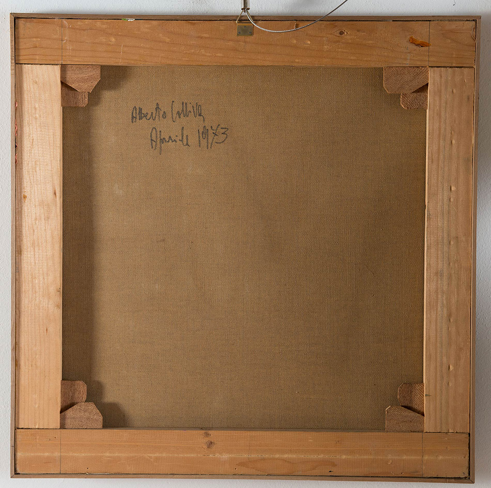 Alberto Colliva (Bologna 1943), “Senza Titolo”, 1973. Olio su tela, firmato e datato al retro Alberto Coliva - Aprile 1973, H cm 60x60
