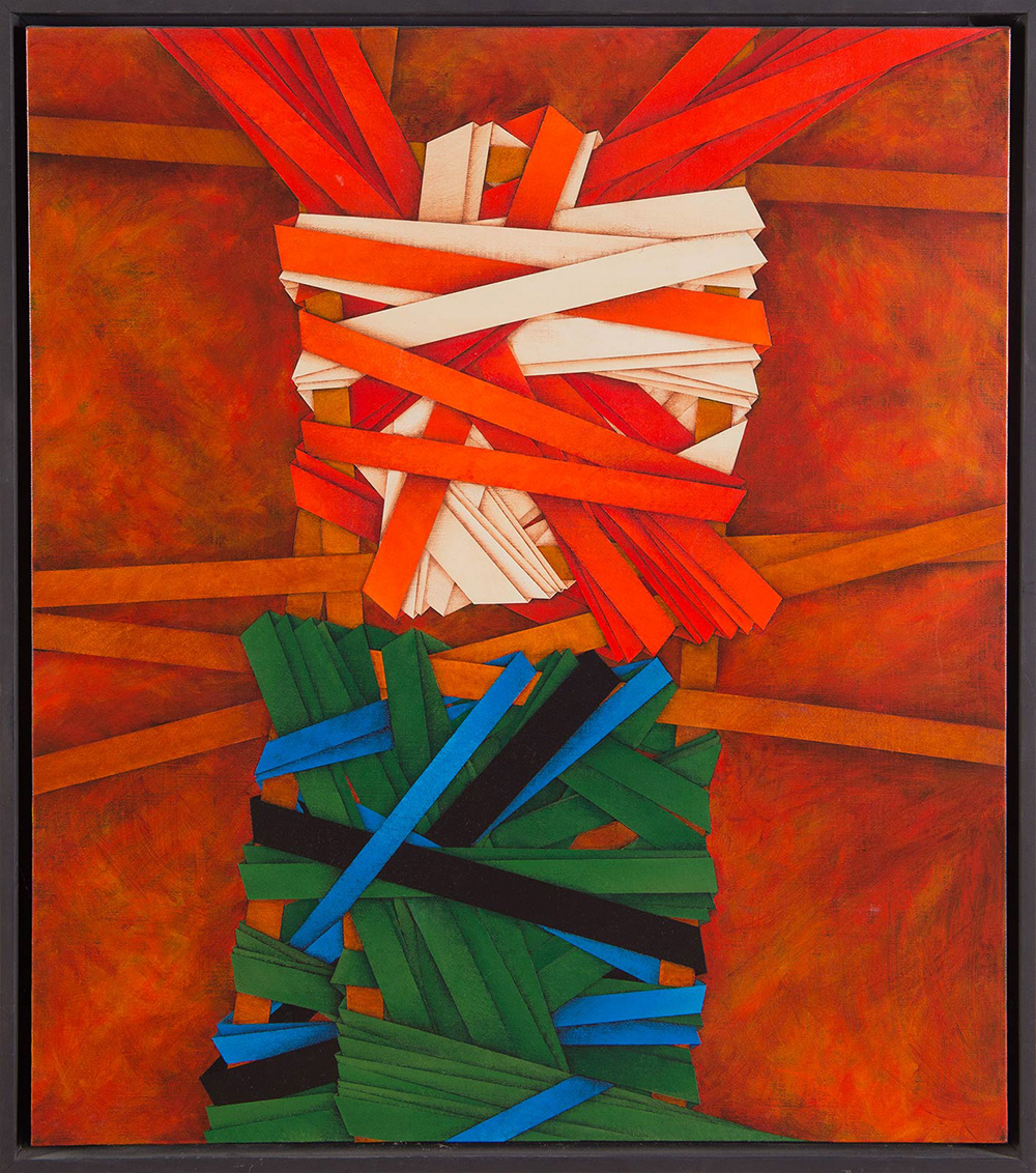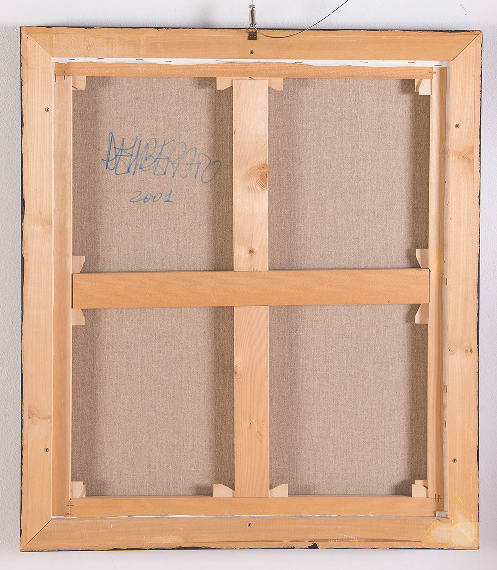 Luciano Deliberato (Chieti 1947), “Senza titolo”, 2001. Olio su tela, opera firmata e datata al retro Deliberato 2001,H cm 80x70