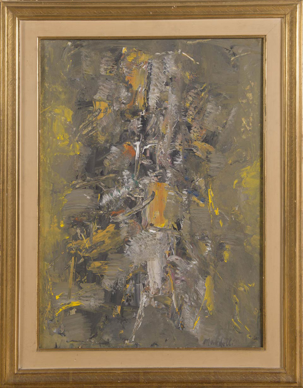 Pompilio Mandelli (Luzzara 1912 - Bologna 2006), “Figura”. Tempera su faesite, firmato in basso a destra Mandelli, H cm 70x50