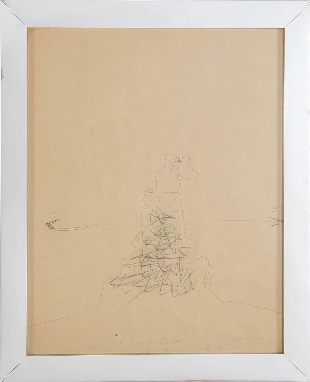 Pirro Cuniberti (Sala Bolognese 1923 - Bologna 2016), “Senza titolo”, 1973. Tecnica mista su carta, firmata in basso al centro Cuniberti, opera datata in basso a destra 29-8-1973H cm 58.5x48.5
