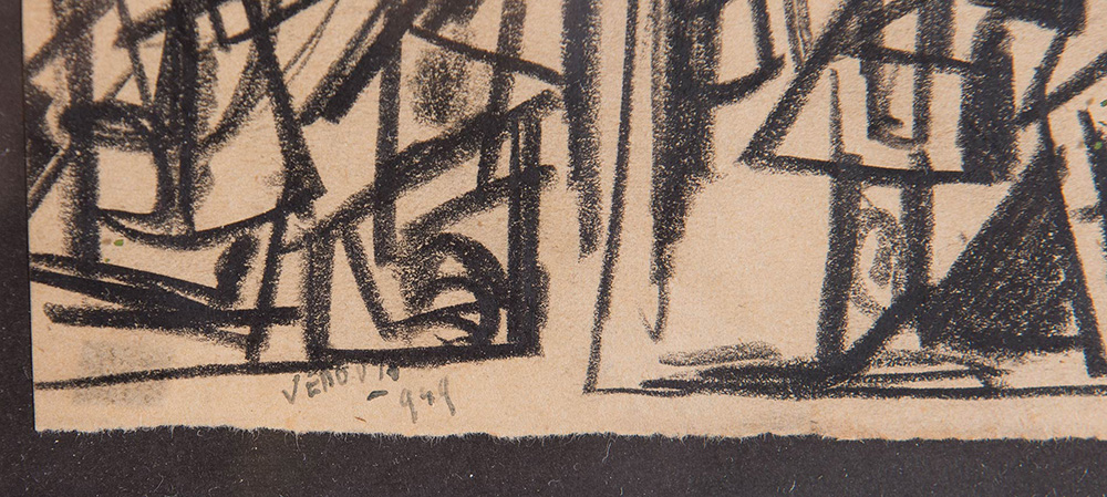 Emilo Vedova (Venezia 1919 –2006), “Dalla cartella (5 disegni di Vedova) n. 4,1/5”, 1949. Carboncino su carta, firmato e datato in basso a sinistra Vedova 949, H cm 20x15