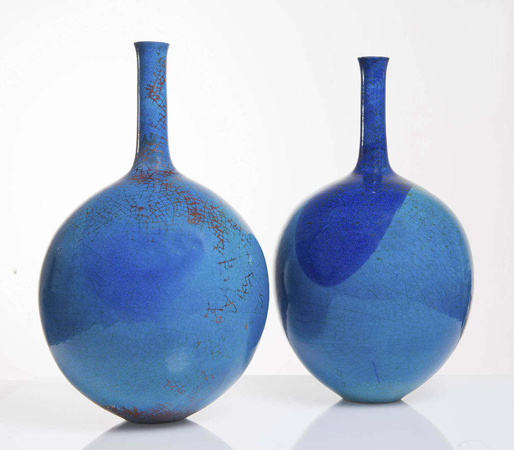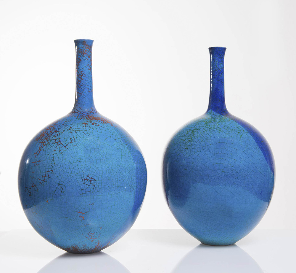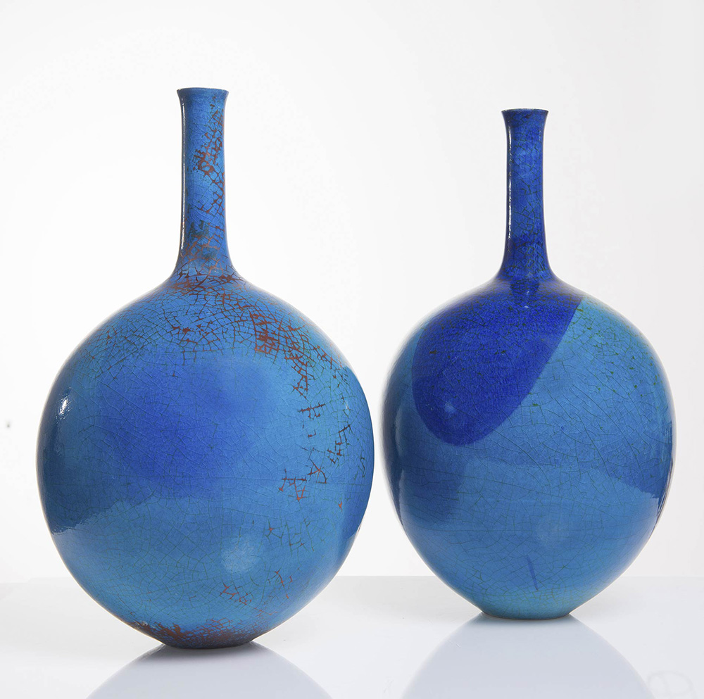 Carlo Zauli (Faenza 1926 - 2002), Coppia di vasi in maiolica blu, Anni ‘60....