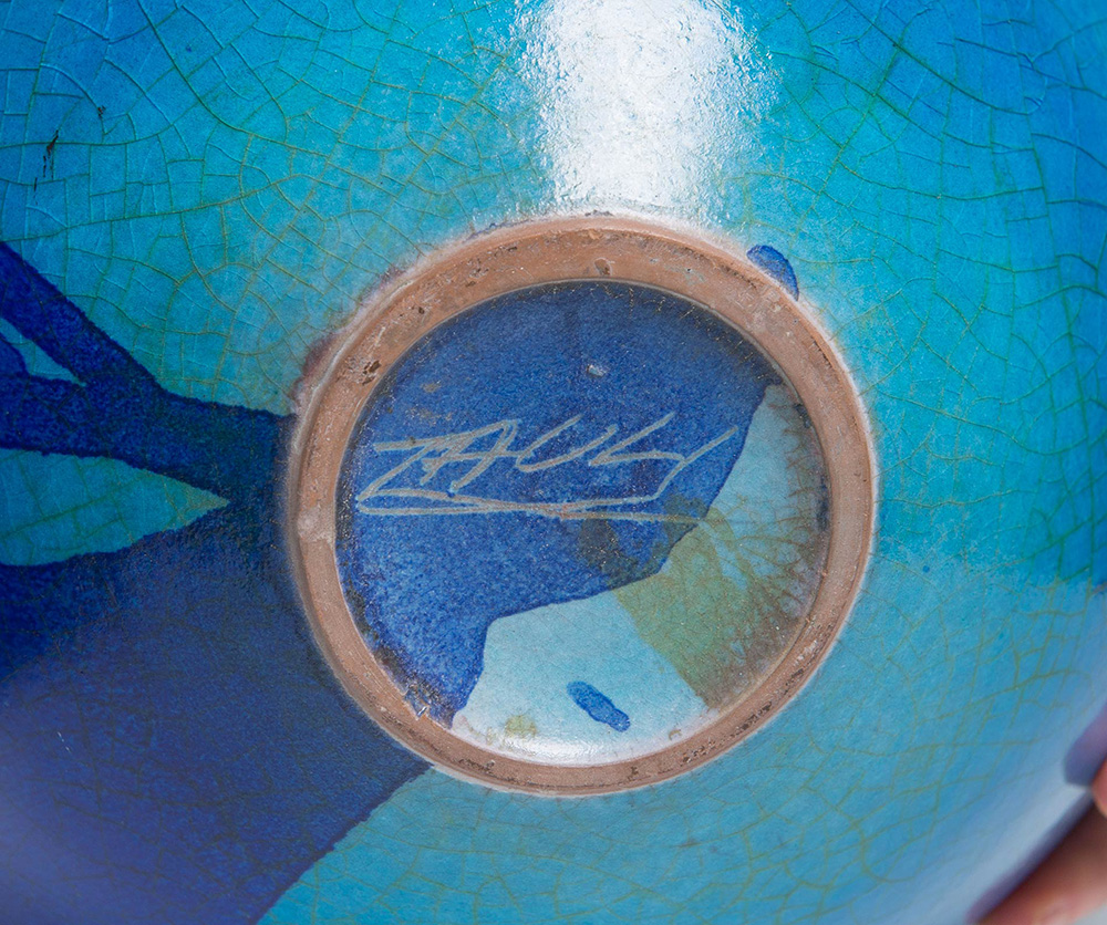 Carlo Zauli (Faenza 1926 - 2002), Coppia di vasi in maiolica blu, Anni ‘60. Cavillature oro, uno firmato sotto la base Zauli, Diametro cm 25 - H cm 42 (restauri all'imboccatura)