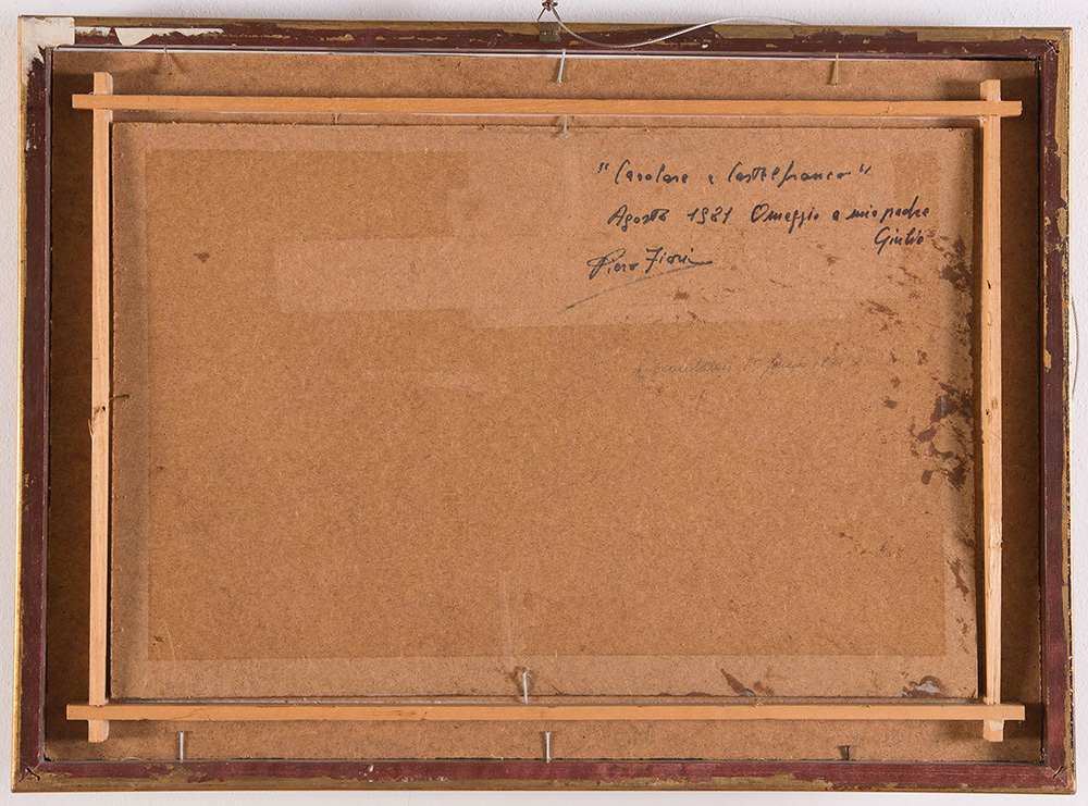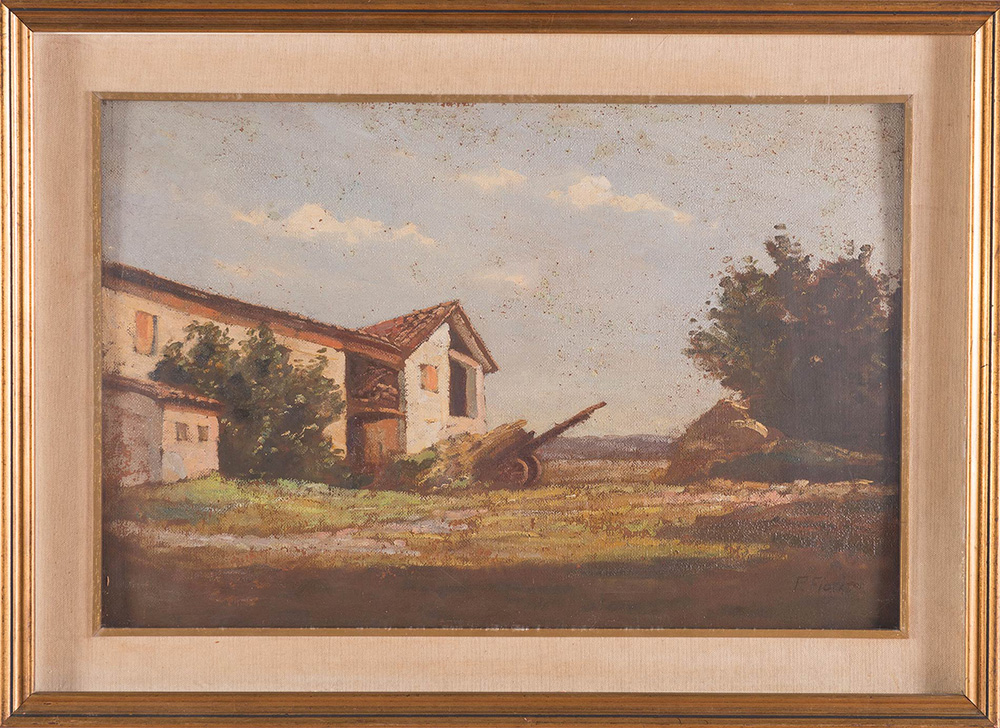 Piero Fiori (Bologna 1947), “Casolare a Castelfranco”. Olio su faesite, firmato in basso a destra Piero Fiori, iscrizione al retro ‘Casolare a Castelfranco - Agosto 1981’, H cm 40x60