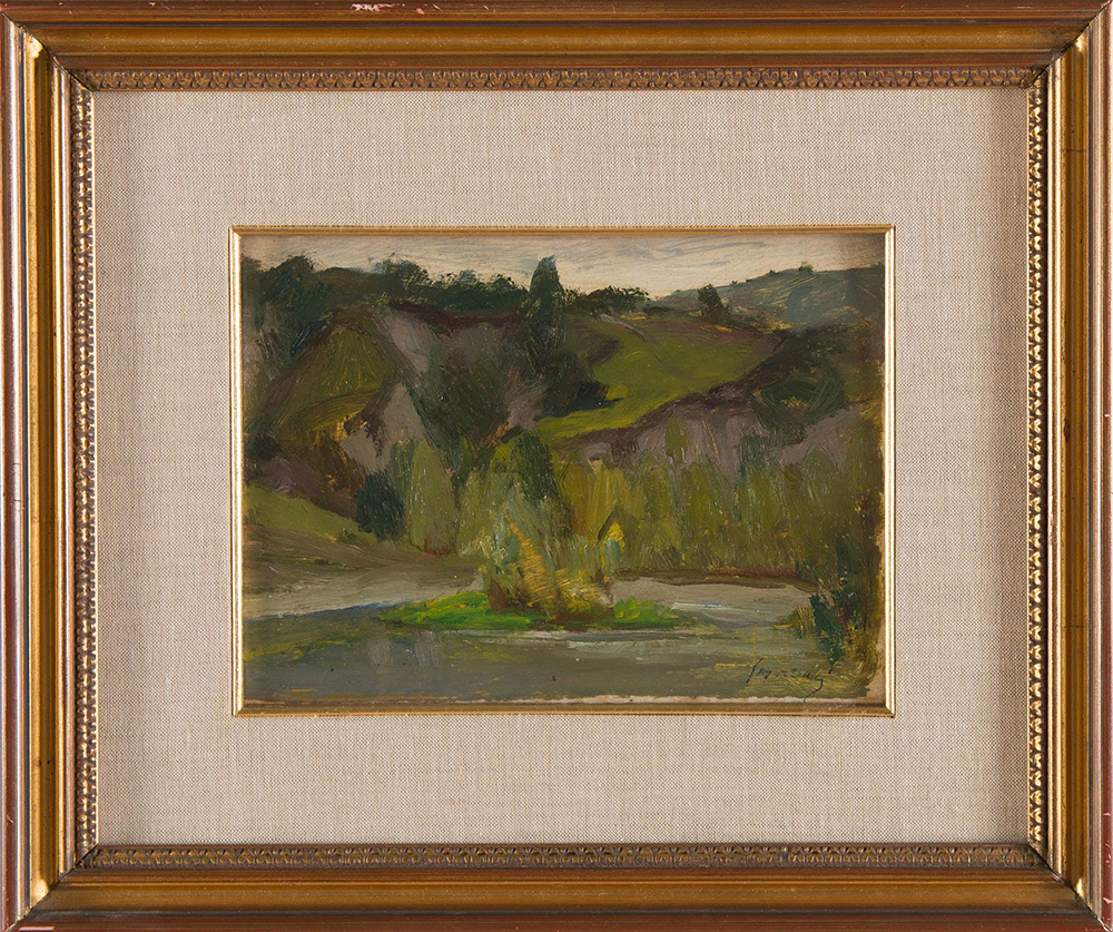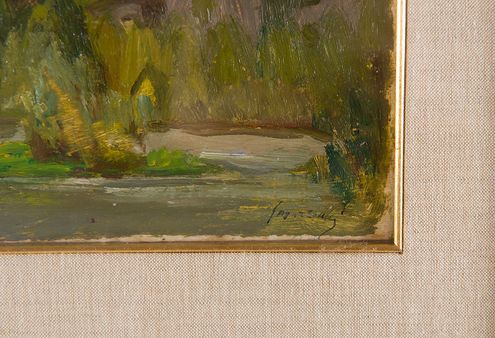 Gino Marzocchi (Molinella 1895 - Bologna 1891), “Brisighella”, 1946. Olio su tavola, firmato in basso a destra Marzocchi, H cm 15x20