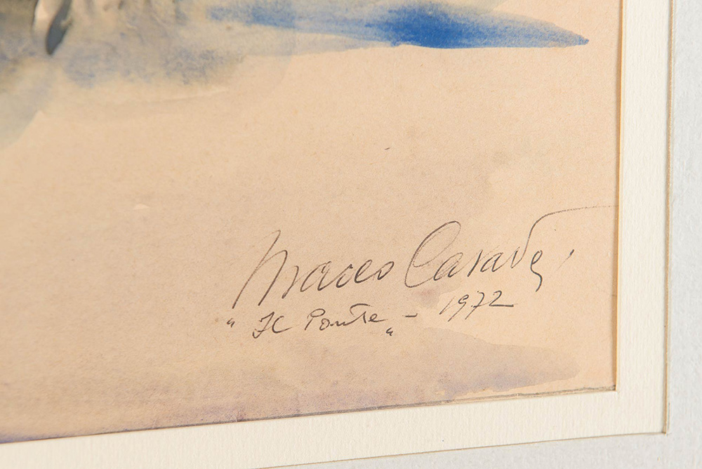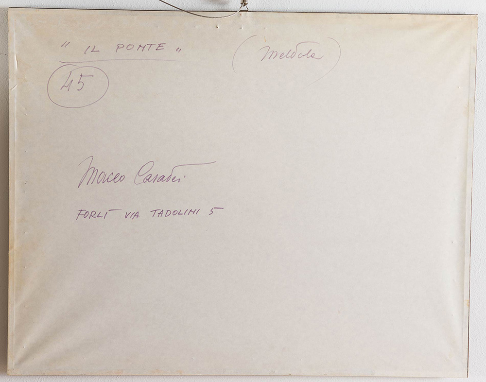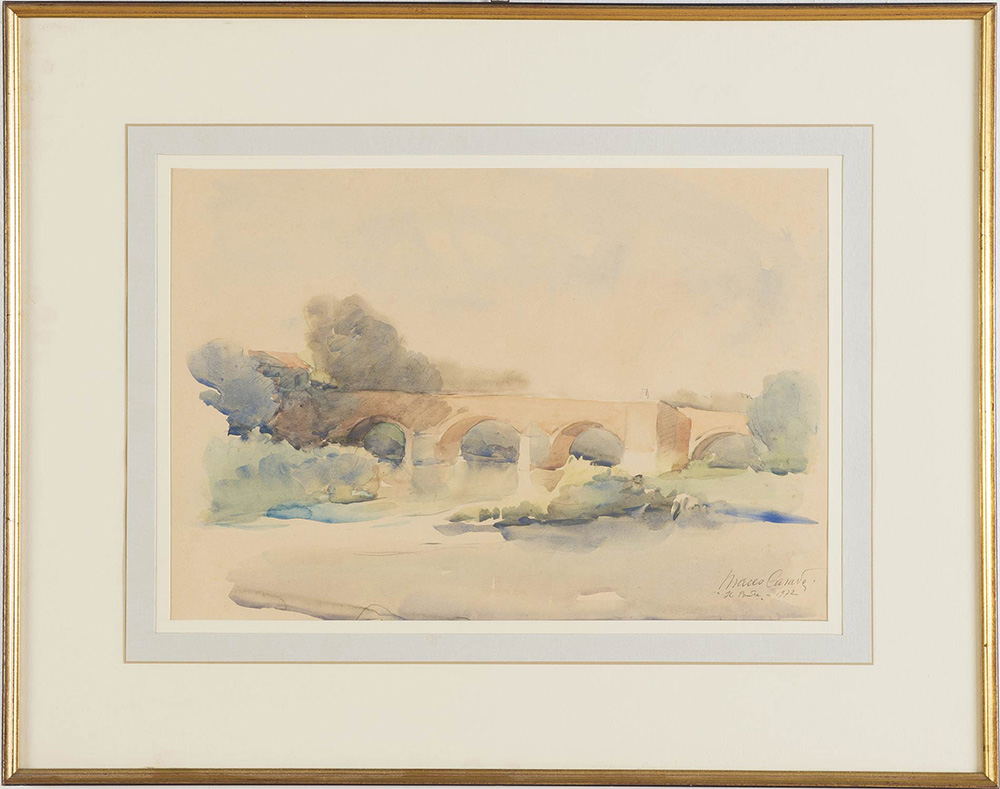 Maceo Casadei (Forlì 1899 - 1992), “Il Ponte”, 1972. Acquerello su carta, firmato e datato in basso a destra Maceo Casadei 1972, al retro opera firmata e titolata ‘Maceo Casadei - Il ponte’, H cm 32.5x47.5