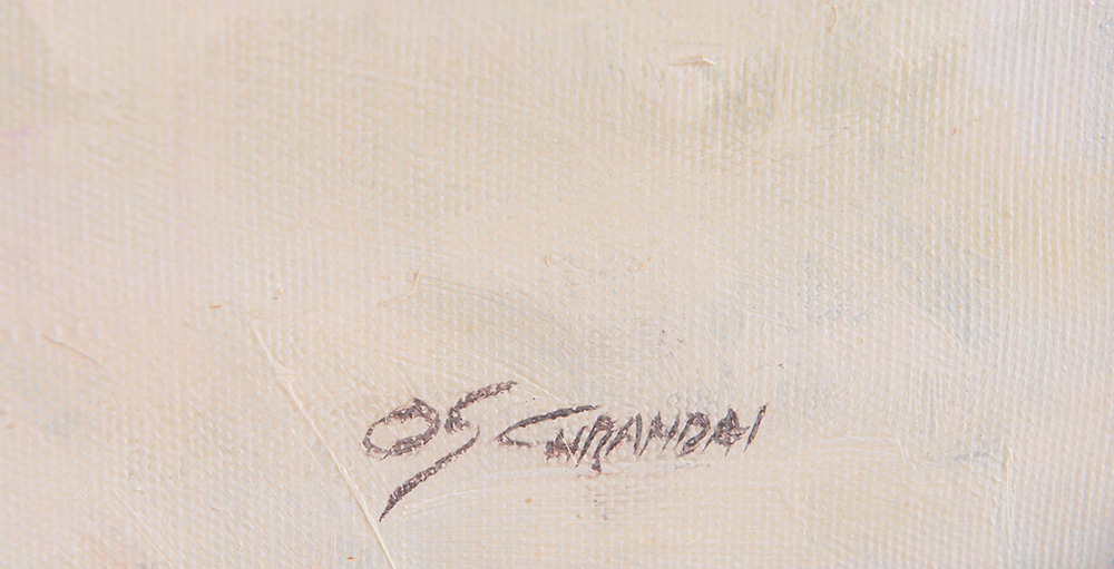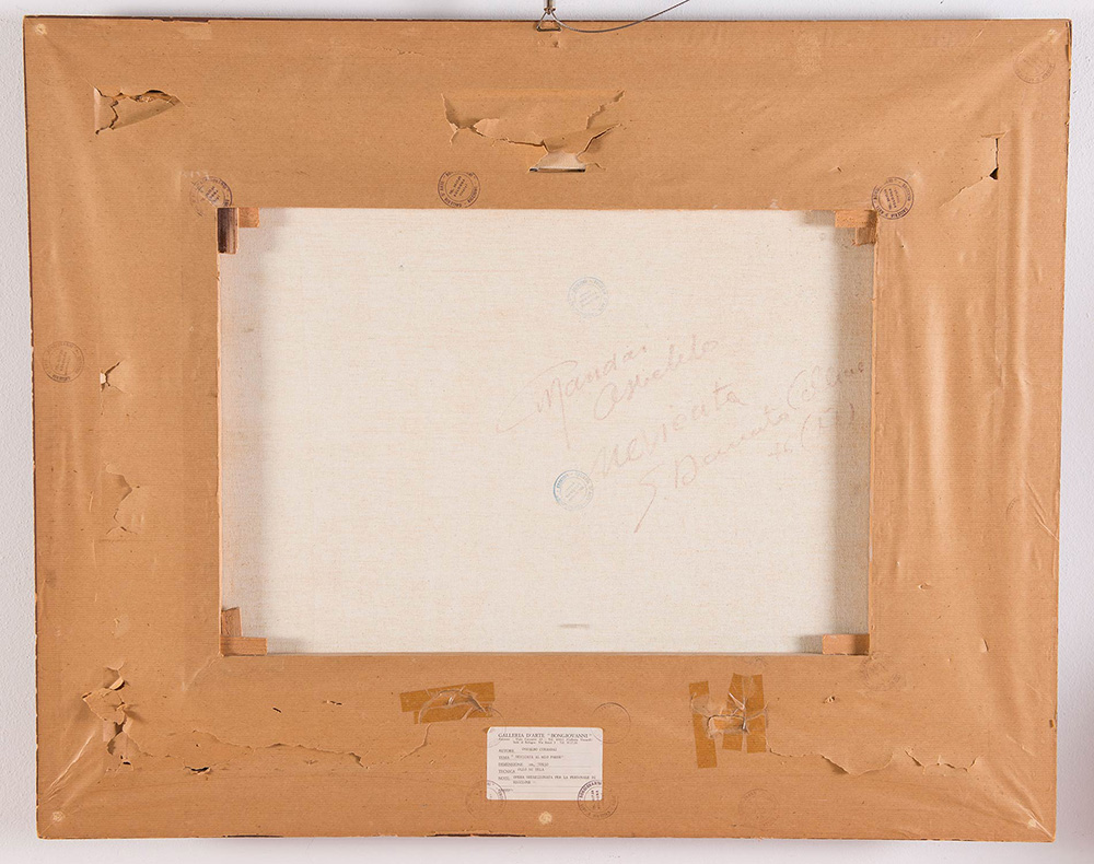 Osvaldo Curandai (Firenze 1931 - ?), “Nevicata al mio paese”. Olio su tela, firmato in basso a destra Osv. Curandai, H cm 50x70