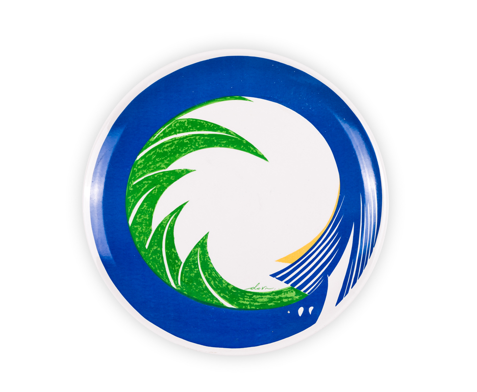 Lotto unico composto da un piatto in ceramica serigrafata e un bozzetto preparatorio del piatto