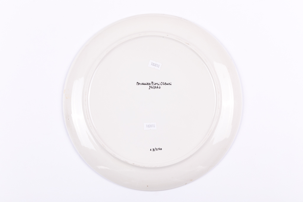 Iscrizione 'Ceramica Fiori Oscuri Milano' e numerazione (Esemplare 17/250) al retro