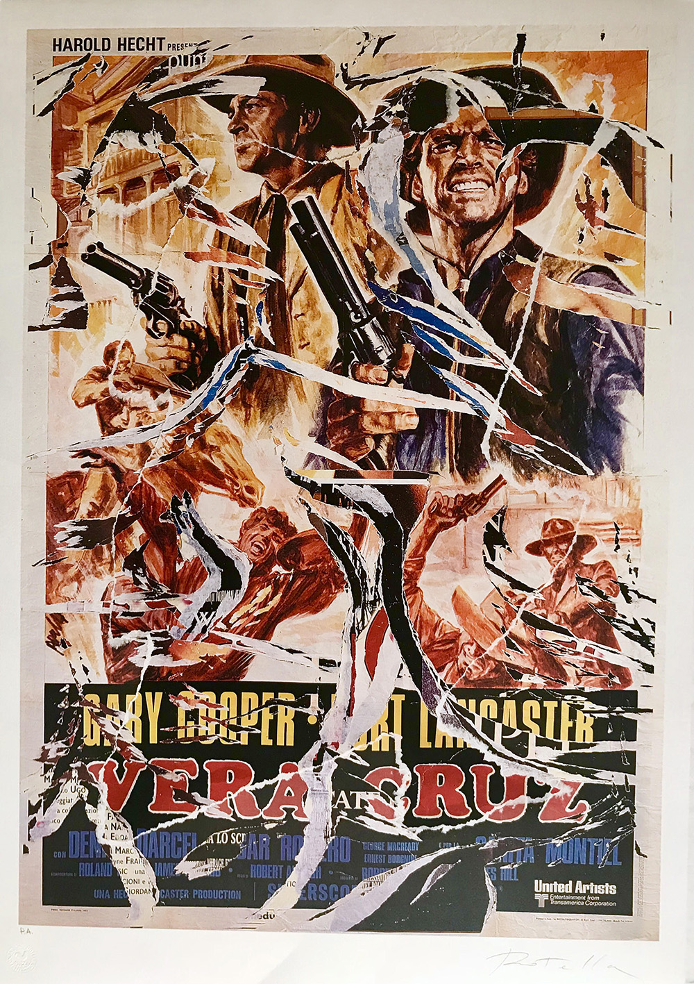ROTELLA MIMMO Catanzaro 1918 - Milano 2006 Vera Cruz serigrafia e decollages su carta 100x70 Firma in basso a destra e tiratura PA a sinistra Timbro della Fondazione Rotella in basso, timbro con numero d'archivio Nordest al retro