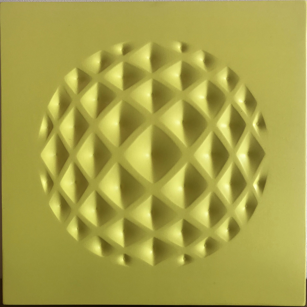 BRUNELLO STEFANO Ferrara 1967 Espansione sfere 2018 acrilico su tela estroflessa 50x50 Firma, anno e titolo al retro Autentica e archivio dell'artista su fotografia