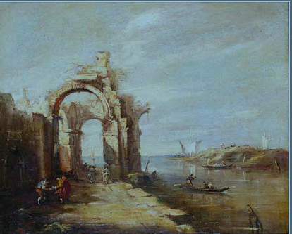 SCUOLA VENETA DEL XVIII/XIX SECOLO CAPRICCIO olio su tela, cm 35x42