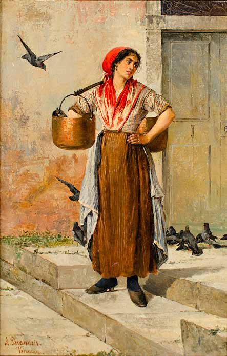 ANTONIETTA BRANDEIS Boemia 1849 – 1920 CONTADINA olio su tela, cm 48,5x32,5. Firmato in basso a sinistra: A. Brandeis Venezia