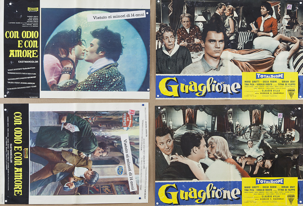 CON ODIO E CON AMORE (1963) + GUAGLIONE (1957) Lotto unico di n. 8 fotobuste, cm 50x70 Condizioni: BUONO