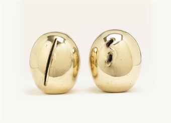 Lucio Fontana (1899-1968) Concetto spaziale, Natura elemento con i buchi: firmato Fontana (sul retro) elemento con il taglio: firmato l. Fontana (sul retro) entrambi numerati 85/500 (sulla base) ottone, due elementi cm 26x20x21 ciascuno Realizzate nel 1967 in 500 esemplari + 5 prove d'artista dalla Fonderia Berrocal (2) Provenance Galleria Alexander Iolas, Milano ivi acquisito dalla famiglia dell'attuale proprietario nel 1972 Literature H. Ruhé, C. Rigo, Lucio Fontana Graphics, Multiples and More..., Amsterdam 2006, p. 139, n. B-1 e B-2 (altri esemplari illustrati)