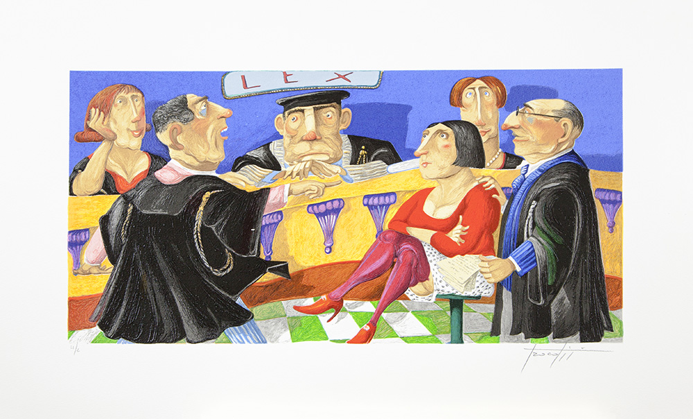 Pino Procopio Guardavalle 1954 "Presunta colpevole" serigrafia su carta esemplare LI/C cm 45x75 firmata in basso a destra; numerata in basso a sinistra + timbro a secco Arte Pentagono