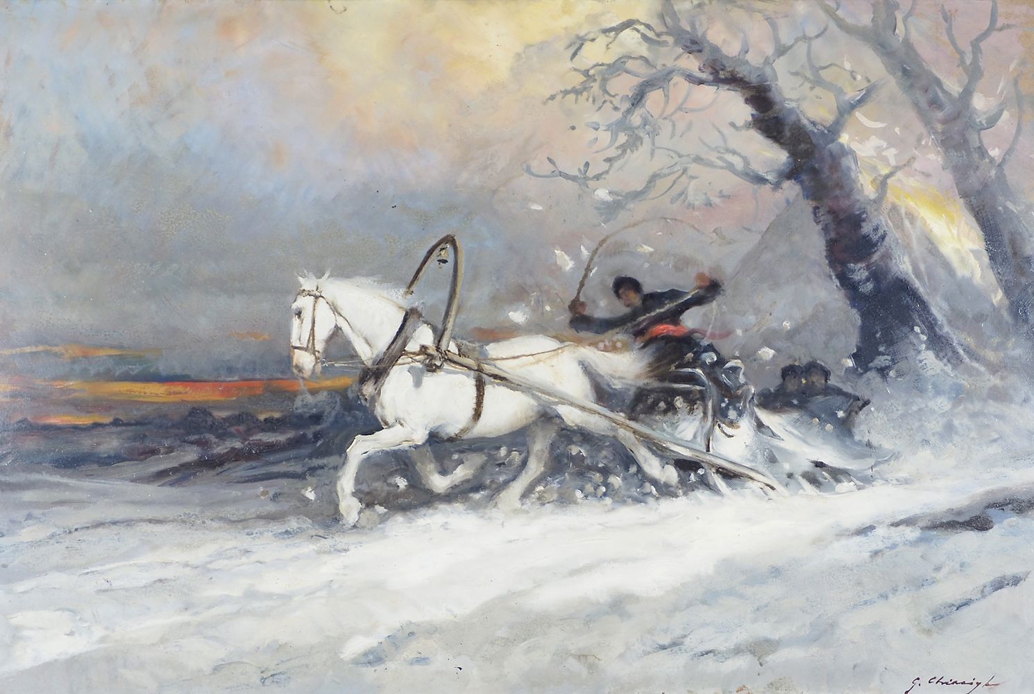 Giuseppe Chiacigh Wladikawkaz 1895-Trieste 1967 "Cavalli e slitta nella neve"...