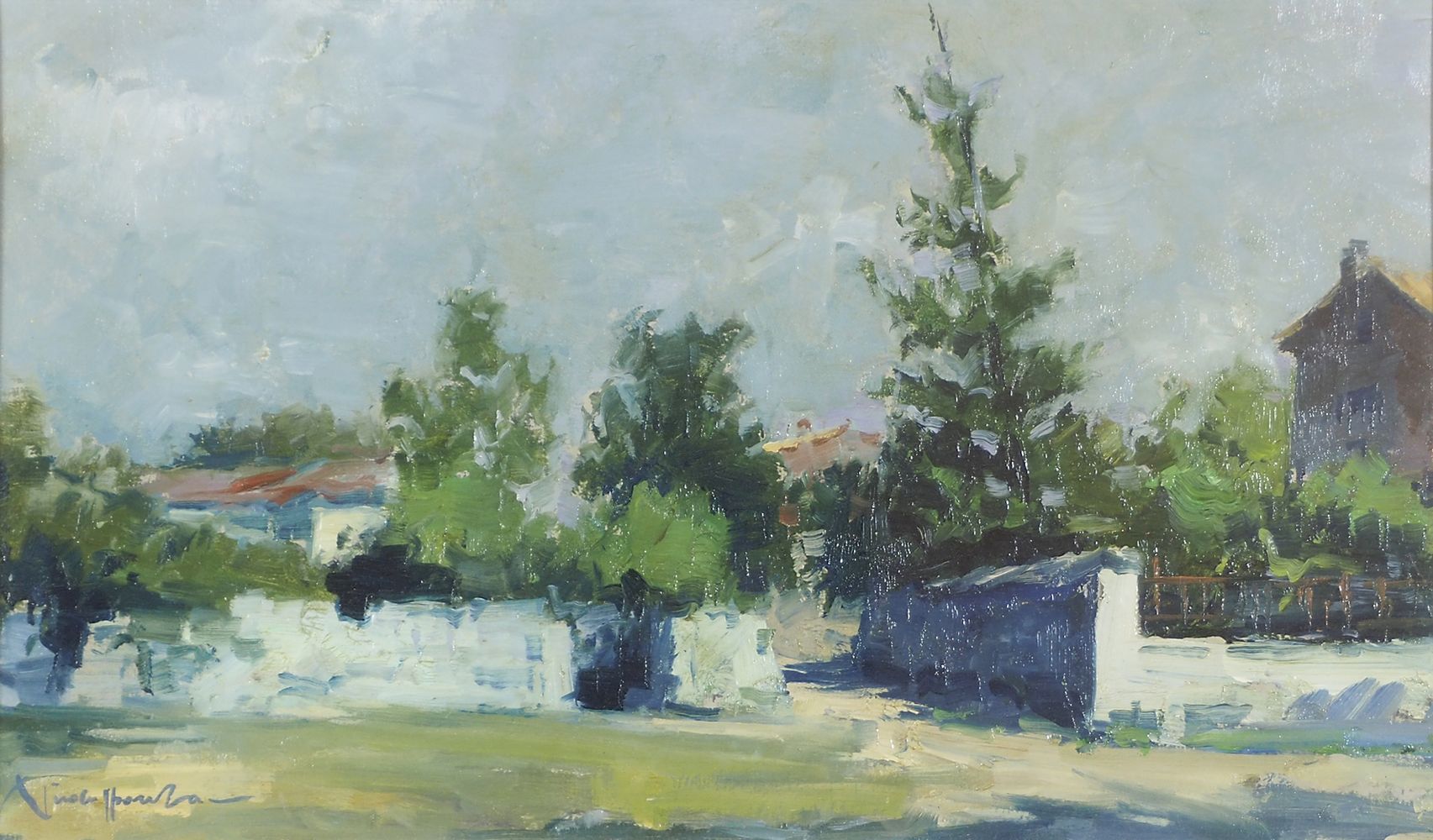 Nicola Sponza Corfù 1914-Trieste 1996 "Casa al mare" cm. 33x50 - olio su...