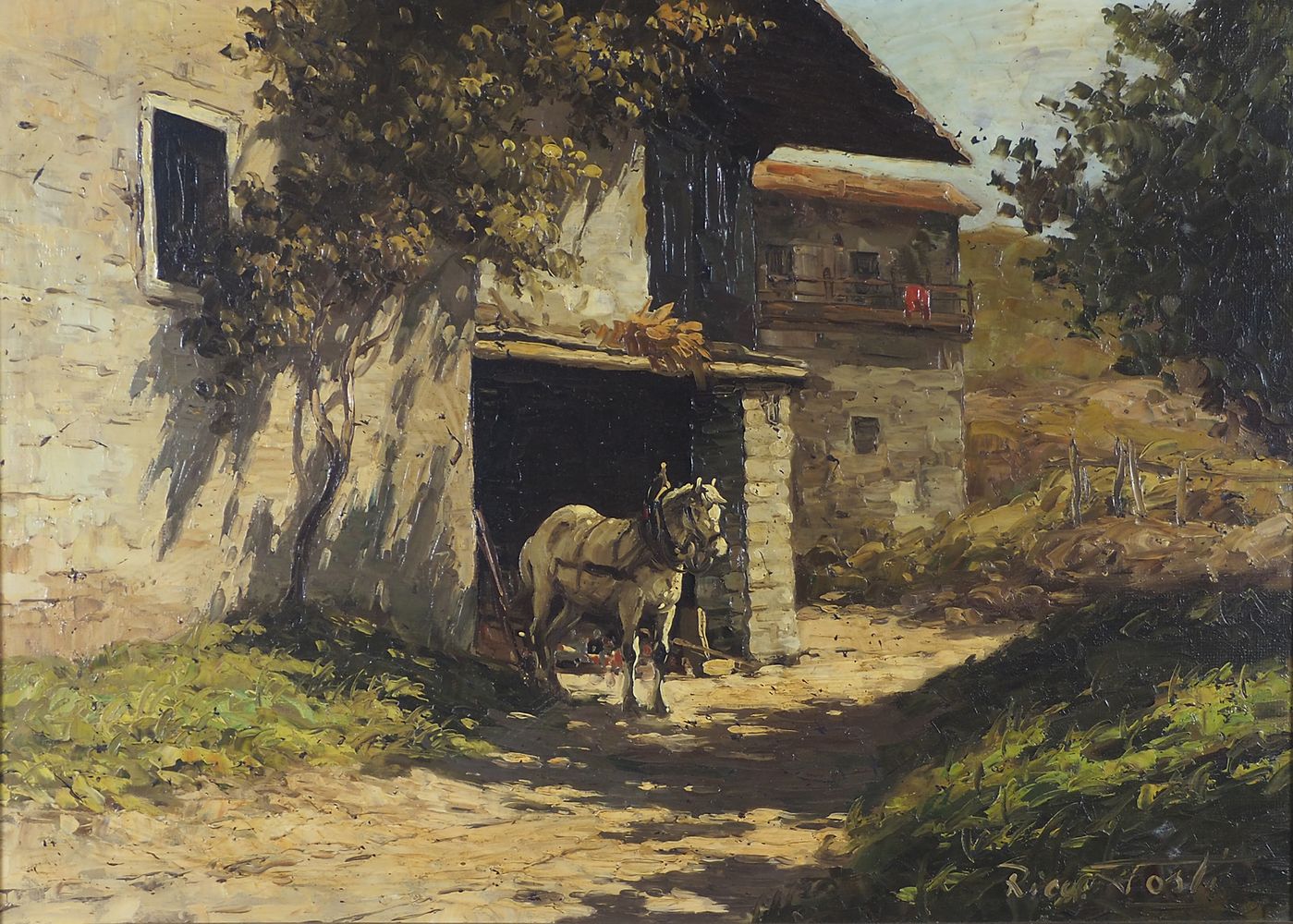Riccardo Tosti Trieste 1910-1986 "il guardiano" cm. 50x70 - olio su faesite Firmato b. a d.