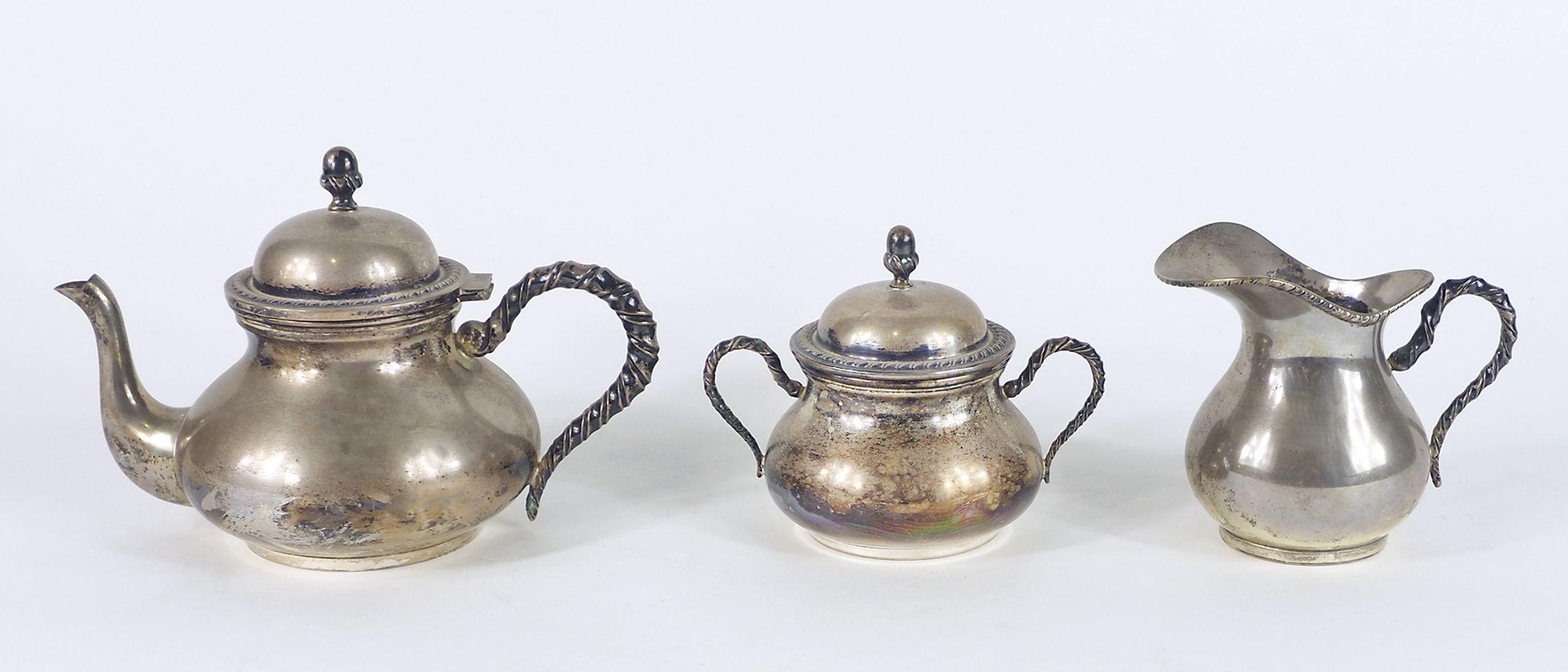 Servizio da caffè in argento composto da caffettiera, lattiera e zuccheriera. Gr. 830.