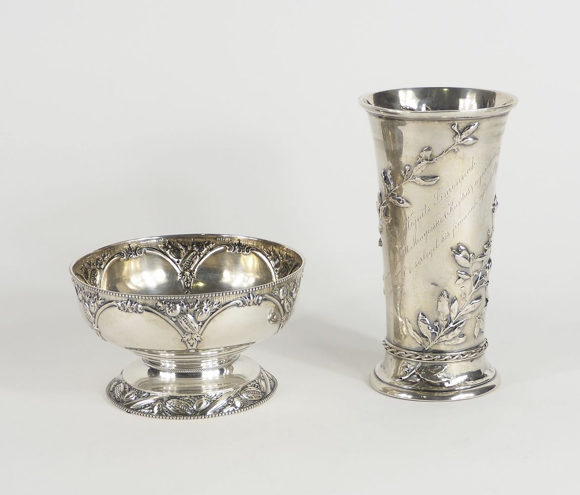 Lotto in argento composto da 2 contenitori con decori sbalzati. Austria, inizio XX secolo. H. max cm. 19. gr. 570.