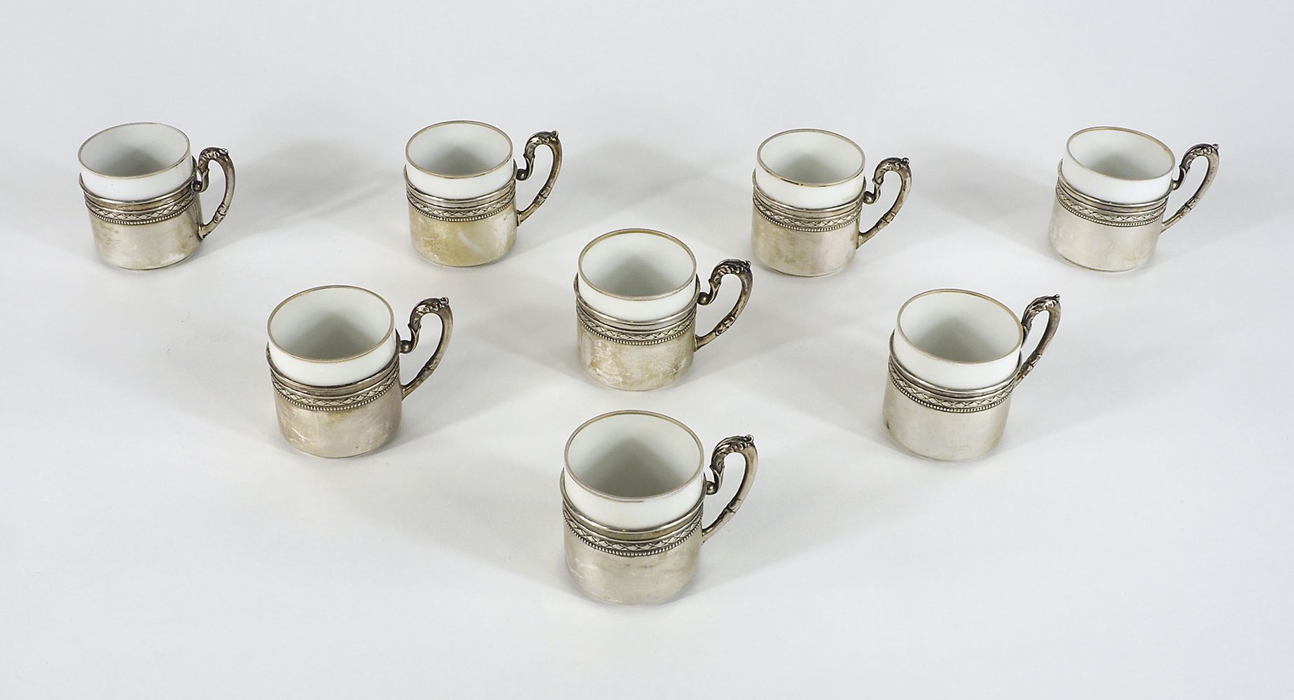 Lotto composto da 8 tazzine in argento con interno in porcellana.