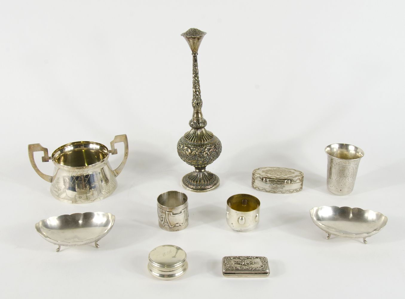 Lotto di vari oggetti in argento (gr. 700) e metallo tra cui scatolette e...