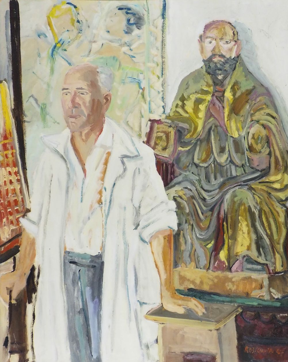 Livio Rosignano Pinguente (Pola) 1924-2015 "Autoritratto" cm. 100x80 - olio su compensato Firmato b. a d. e datato '57