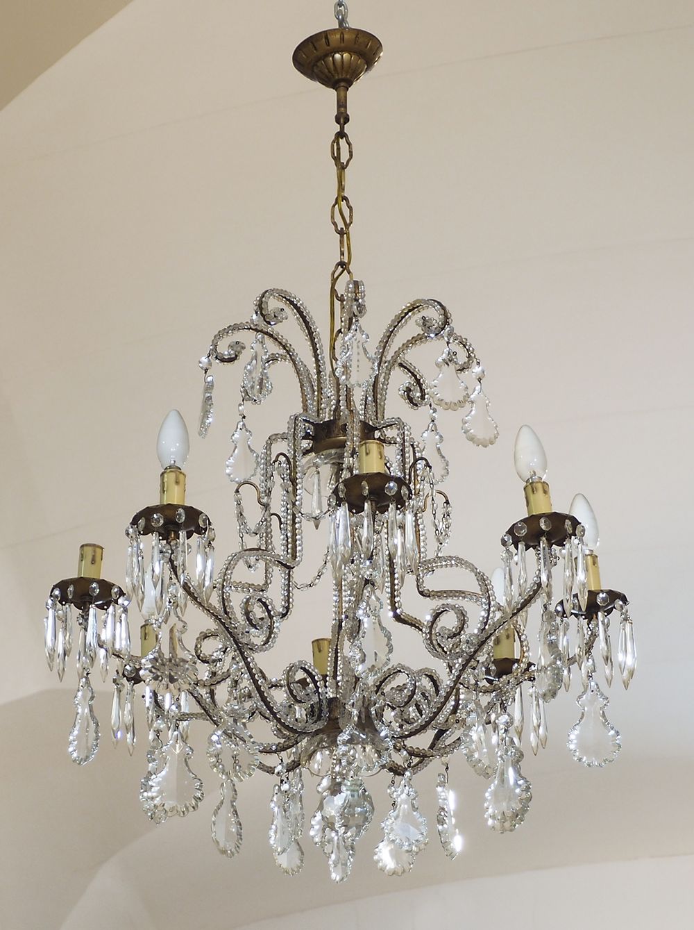 Lampadario in cristallo a 8 luci con pendenti. H. cm. 102.
