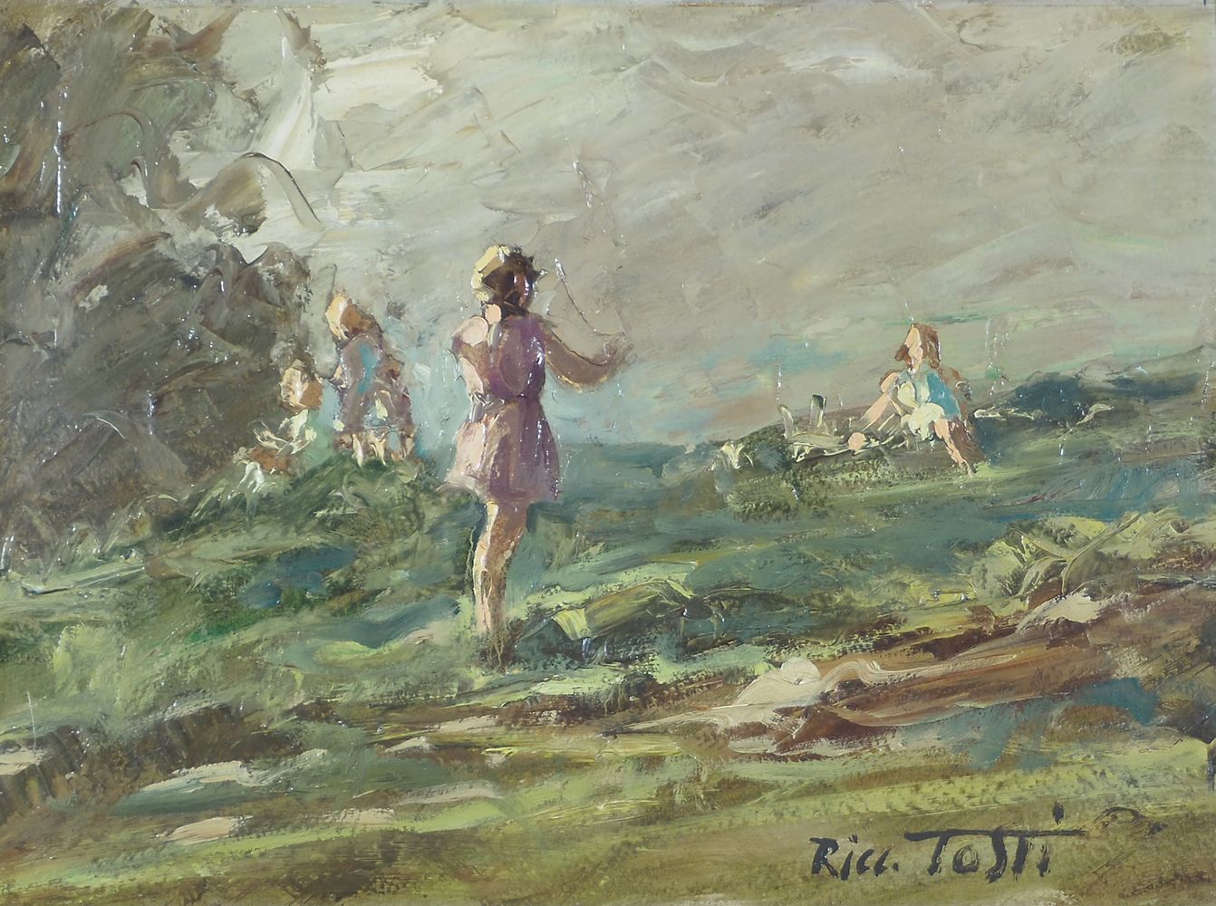 Riccardo Tosti Trieste 1910-1986 "Le bagnanti" cm. 29x39 - olio su cartone Firmato b. a d.