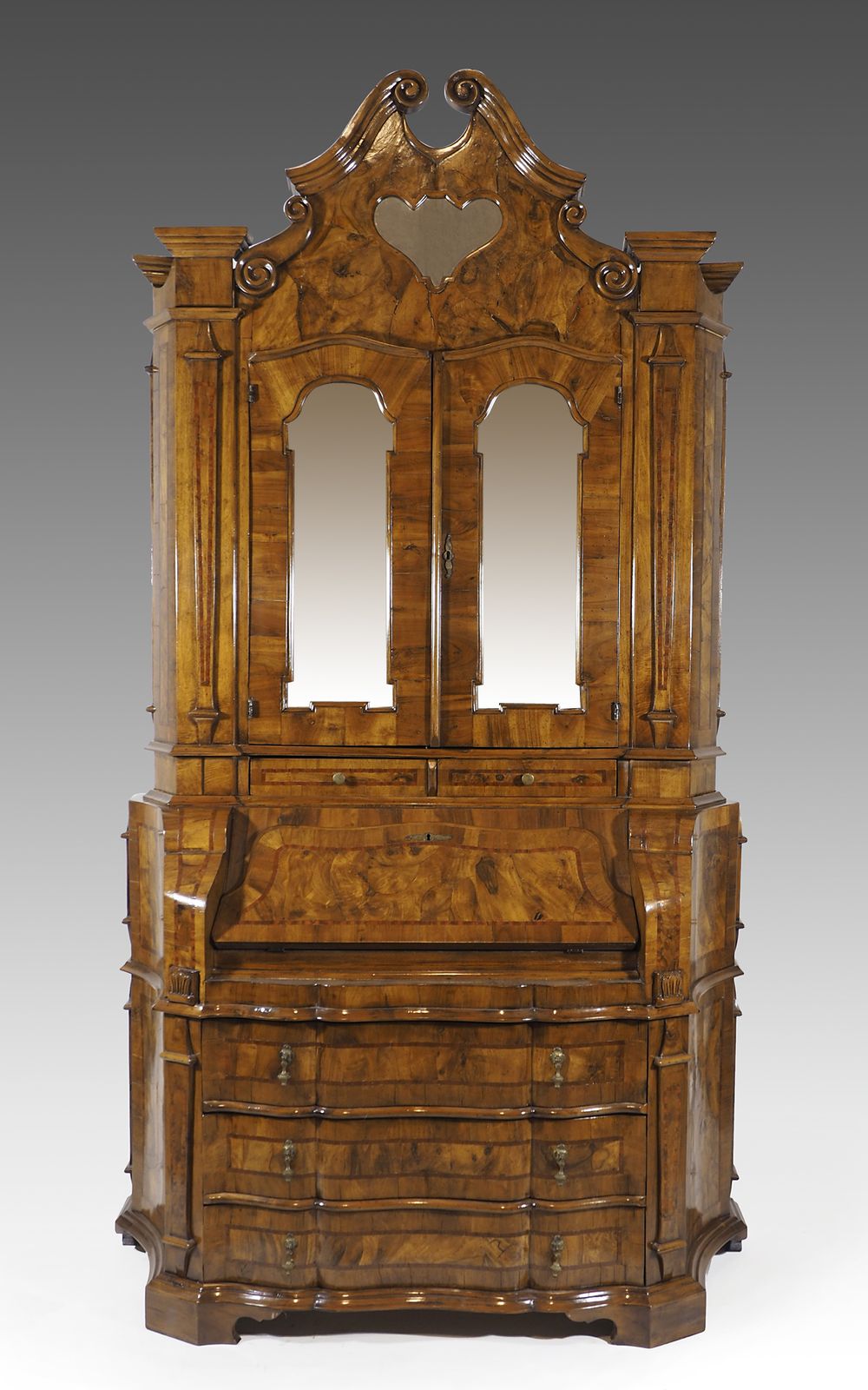 Lot 158 | Trumeau a doppio corpo con parte inferiore a 3 cassetti e calatoia, parte...