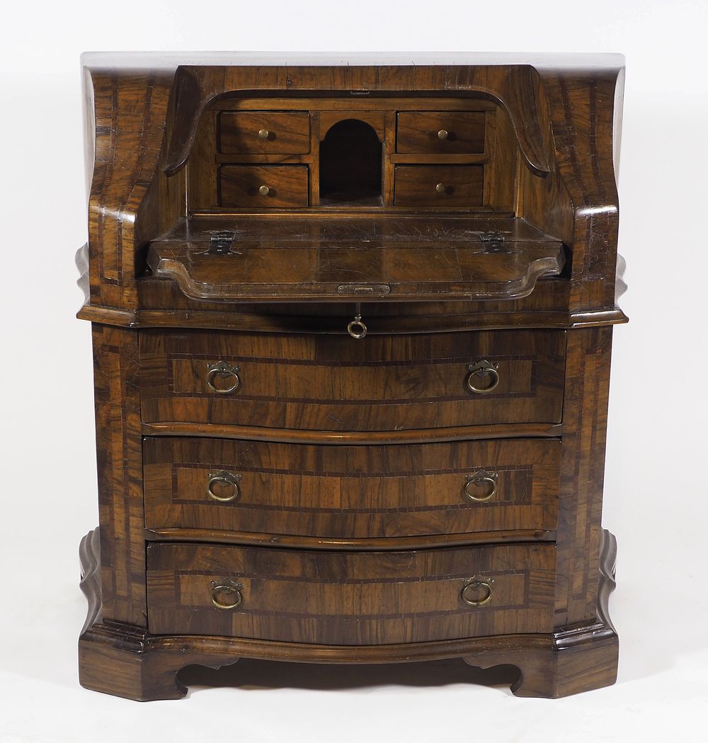 Lot 159 | Mobiletto in legno a 3 cassetti e calatoia. cm. 105x95x48.
