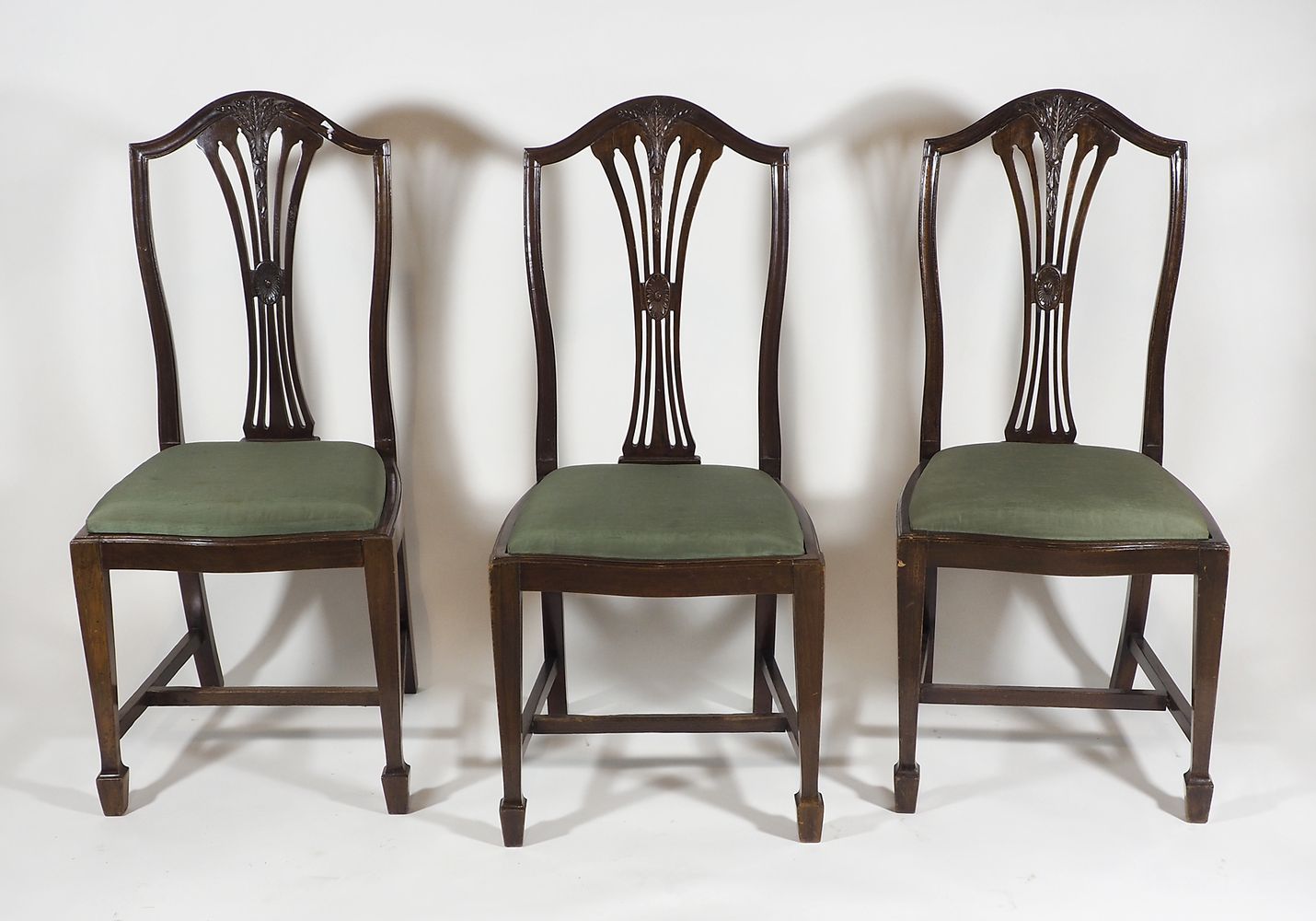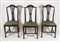 Lotto di 6 sedie inglesi in legno con alto schienale lavorato.