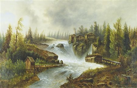 L. Pointner Attivo nel XIX secolo "Paesaggio con cascata" cm. 70x106 - olio...