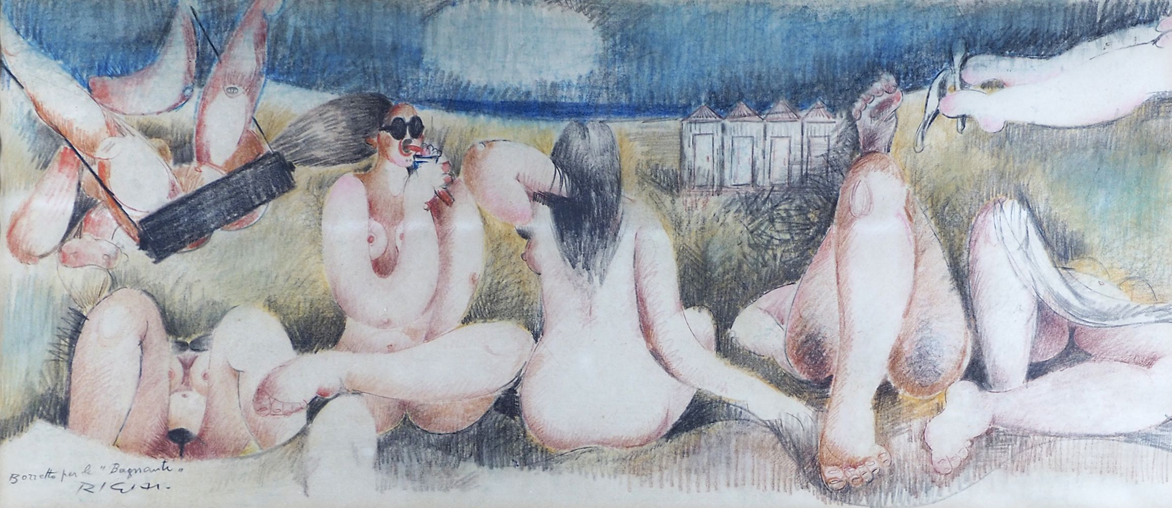Lot 201 | Federico Righi Trieste 1908-1987 "Le bagnanti" cm. 40x90 - tecnica mista...