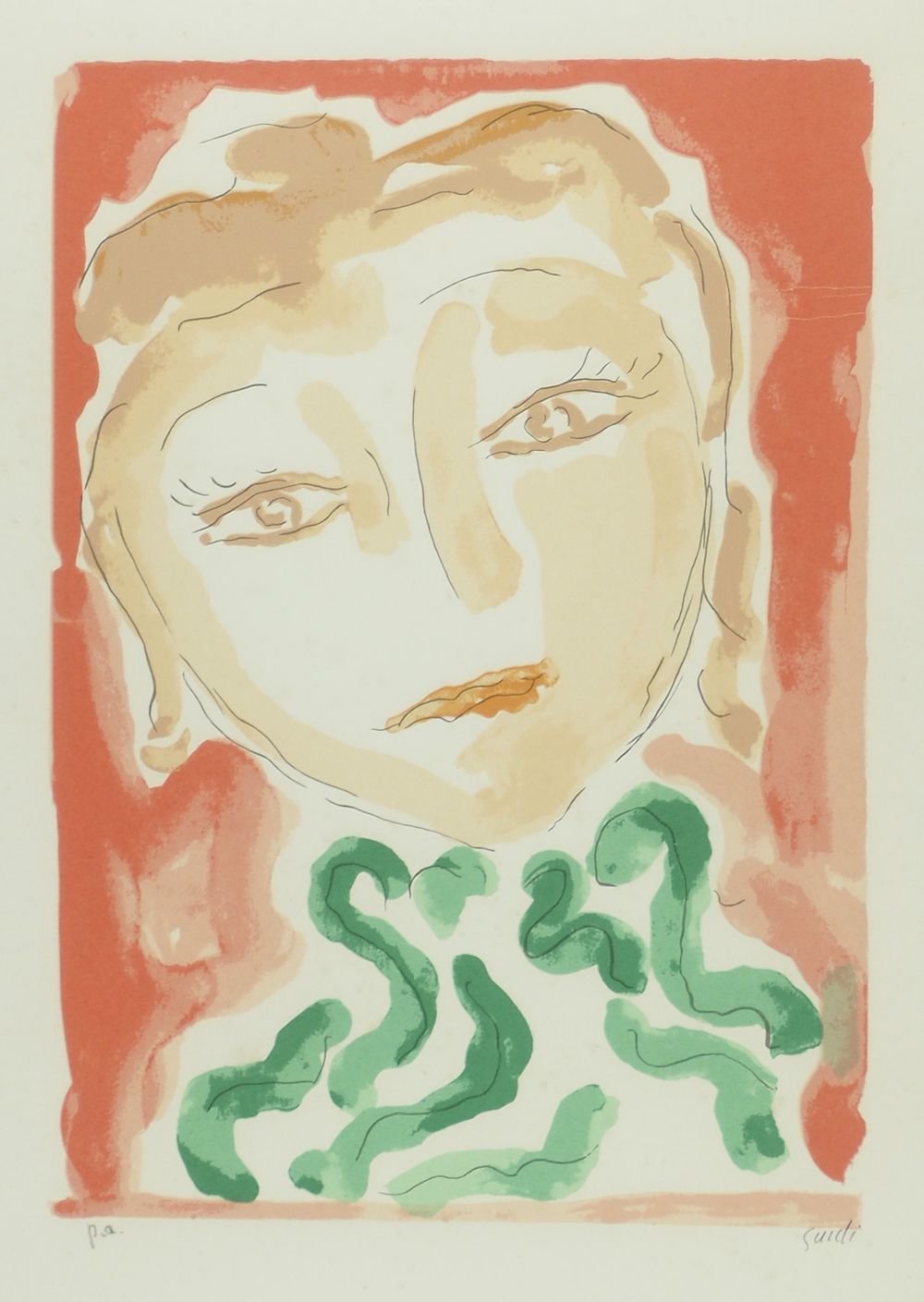 Virgilio Guidi Roma 1891-Venezia 1984 "Volto" cm. 70x50 - litografia a colori Firmato b. a d. Prova d'Artista.