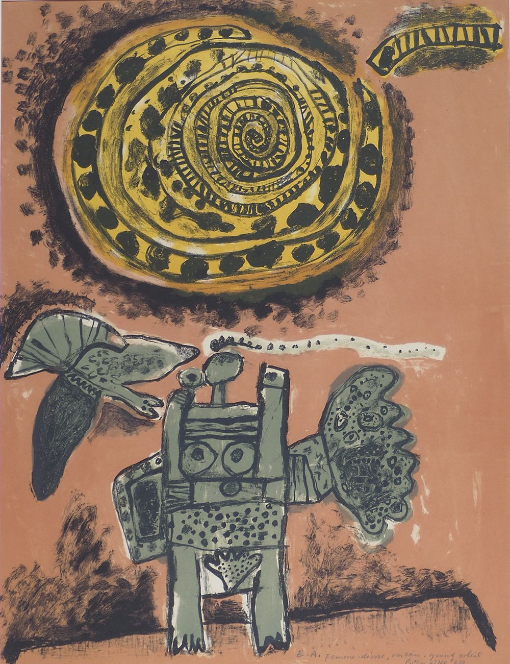 Guillaume Corneille 1922-2010 "Femme" cm. 66x50 - litografia a colori Firmato b. a d. e datato '68. Esemplare E.A.