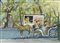 Walter Piacesi 1929 "Fiacre in sosta in una via di Cattolica" cm. 30x40 - olio su tavola Firma e titolo b. a d. Al retro: etichetta con titolo; dedica firmata dall'Artista; timbro Galleria Ghelfi Verona.