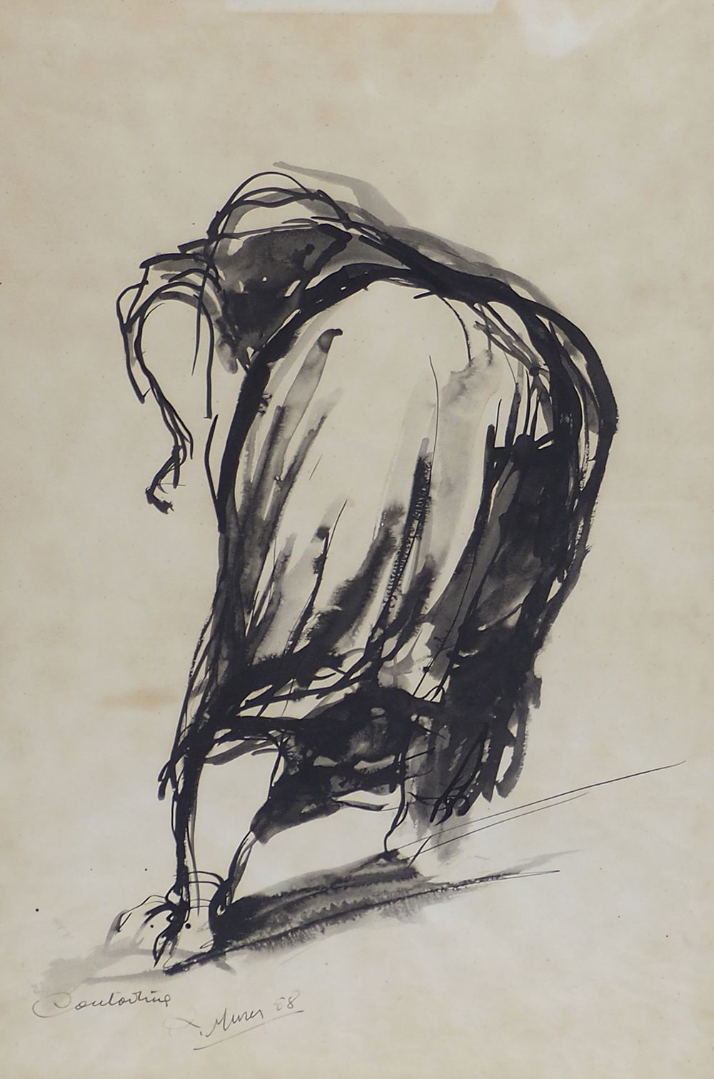Augusto Murer 1922-1985 "Contadina" cm. 50x34 - tecnica mista su carta Firma, titolo e data '58 b. a s.