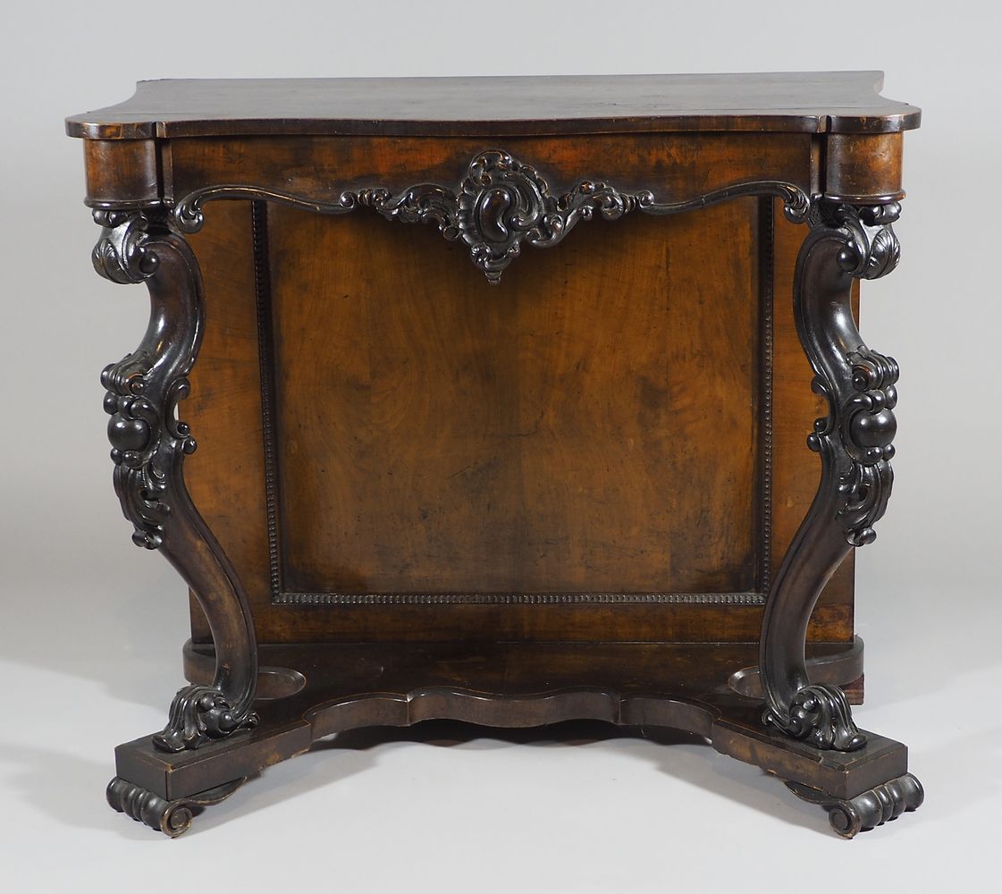 Consolle in legno scuro su gambe mosse finemente scolpite, parte superiore...